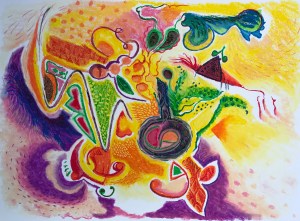 The molting artist (2020 24X18 in. Oil pastel and ball pen on paper)