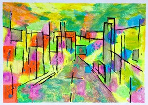 Downtown (2017 18X24 in. Oil pastel)