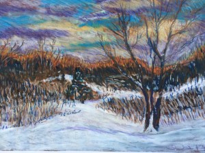 North Oaks winter (2013 18X24 in. Oil pastel)