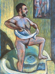 Saint Peter in bathtub (2019 24X18 in. Oil pastel)