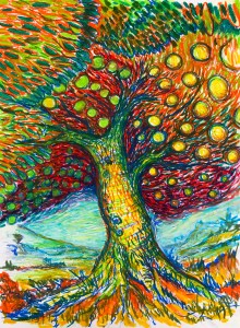 My backyard tree (2017 24X18 in. Oil pastel)