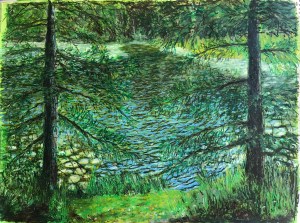 Namur pond 2 (2019 24X18 in. Oil pastel)