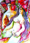 Lovers (2014 8X8 in. Watercolor and ball pen on paper)