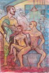 The sauna (2018 size? Oil pastel on canvas)